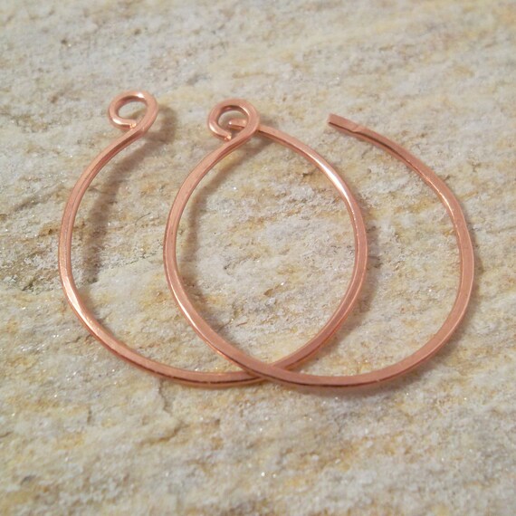These are our favorite copper hoop earrings and we think you will love them too! These copper hoop earrings are designed to slide comfortably through the back of your piercing until the knot catches at the back, creating the illusion of a full hoop without the clasp.
